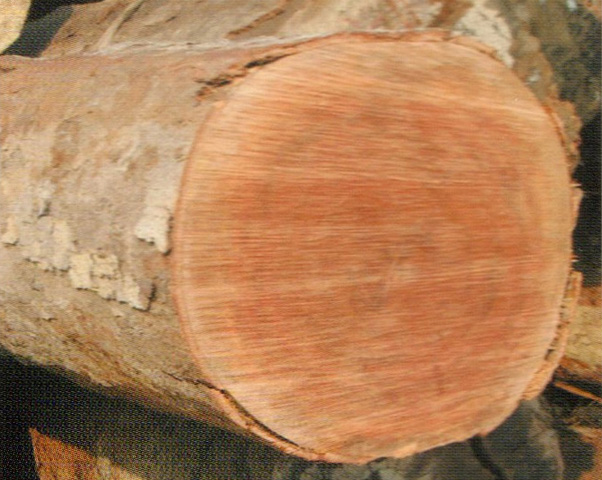 心邊材區(qū)刖路明顯、心材灰紅褐色至紅褐色。久則轉(zhuǎn)為巧克力色。邊材淺灰褐色、寬5~10cm,生長(zhǎng)輪不明顯。